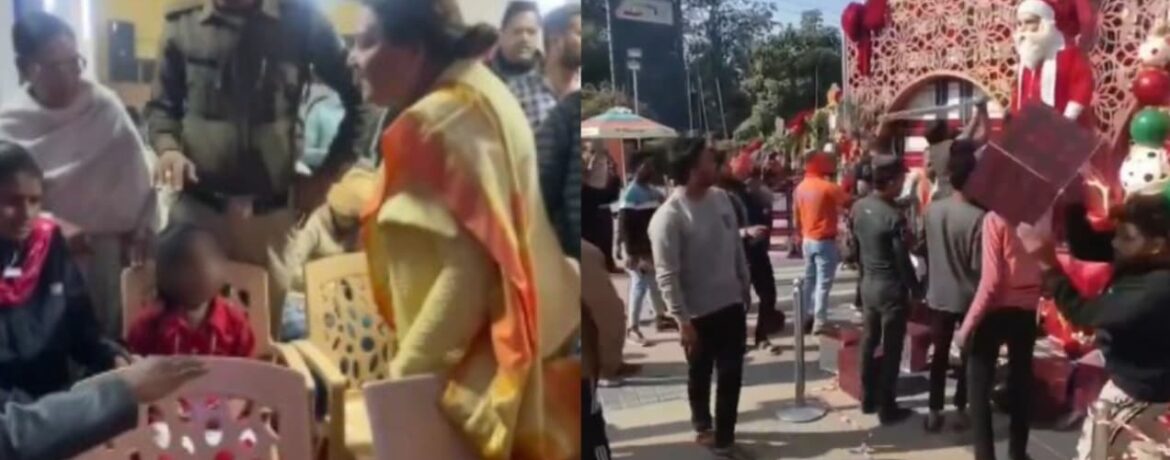 Em Raipur, capital do estado de Chhattisgarh, uma multidão de quase 90 homens vandalizou as decorações natalinas de um shopping.