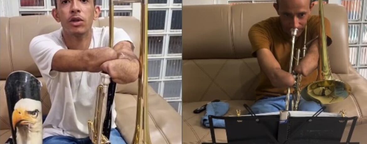 Cristão sem mãos supera deficiência e aprende a tocar trombone: ‘Queria servir a Deus’