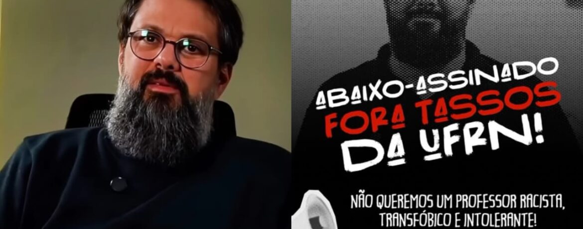 Os estudantes divulgaram banners contra o professor cristão nas redes sociais, que dizem: “Fora Tassos da UFRN!”, “[O coletivo] Juntos denuncia professor transfóbico e conspiracionista da UFRN”.