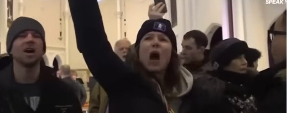 Manifestantes, incluindo integrantes da Racial Justice Network e do Black Lives Matter Minnesota, invadiram o santuário da Cities Church durante o culto conduzido pelo pastor sênior Jonathan Parnell.