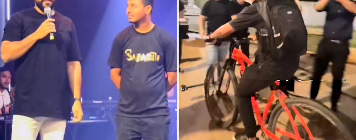 O líder Marciano Queiroz, da Aviva Igreja, relatou à congregação o esforço de Bruninho para chegar ao templo e explicou que, apesar da disposição, a bicicleta era essencial para facilitar sua locomoção.