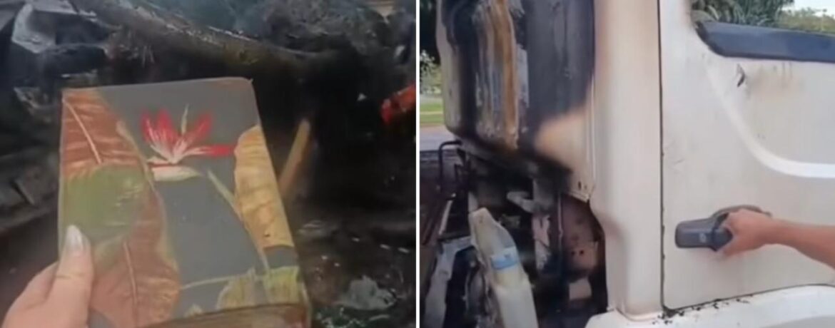 Na última quinta-feira (15), uma caminhoneira teve seu veículo incendiado em Palmas, no Tocantins, e encontrou conforto ao perceber que sua Bíblia permaneceu praticamente intacta na porta do motorista.