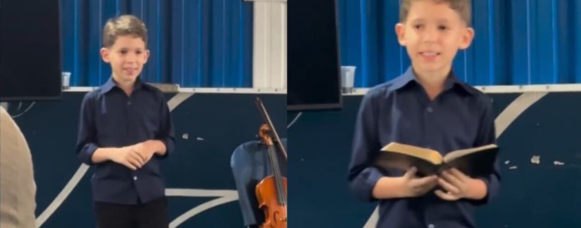 “Eu pedi muito pra minha mãe pra eu poder vir aqui. E eu queria dizer algumas palavras pra vocês. Eu amo muito tocar violino, mas eu amo ainda mais falar sobre Deus. O avivamento que vocês estão vendo é o avivamento que eu aprendi, que é quando o nosso coração fica pertinho de Deus. A gente não pode se afastar Dele”, iniciou o menino, em vídeo compartilhado por um professor do colégio no Instagram.