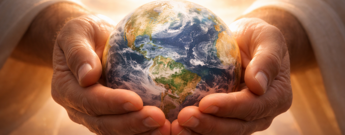 Você provavelmente já viu aquela imagem de um globo terrestre nas mãos de Deus. Quando olhamos para ela, geralmente sentimos segurança, ordem e o cuidado de um Deus que sustenta tudo. O mundo inteiro – tão complexo e frágil – apoiado por mãos firmes e cheias de amor.