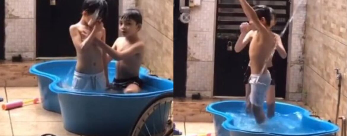 Menino batiza amigo na piscina de casa: “Nova criatura”